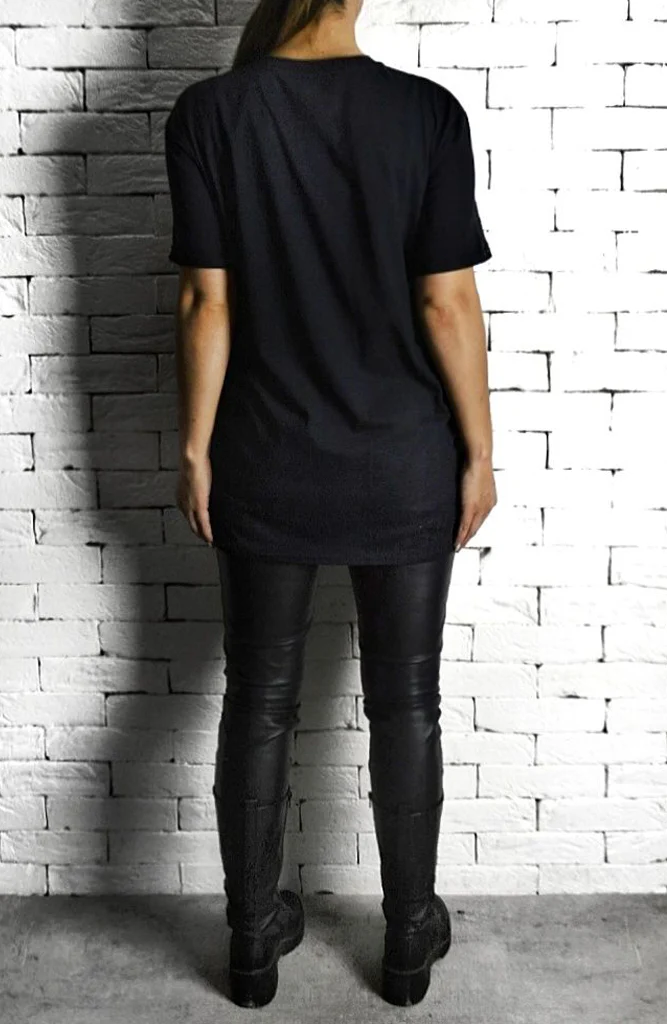 Iron Maiden printed logo crew neck t-shirt, with rolled sleeves and an oversized fit, wear leggings for a casual look or dress up with a leather pencil skirt and heels,